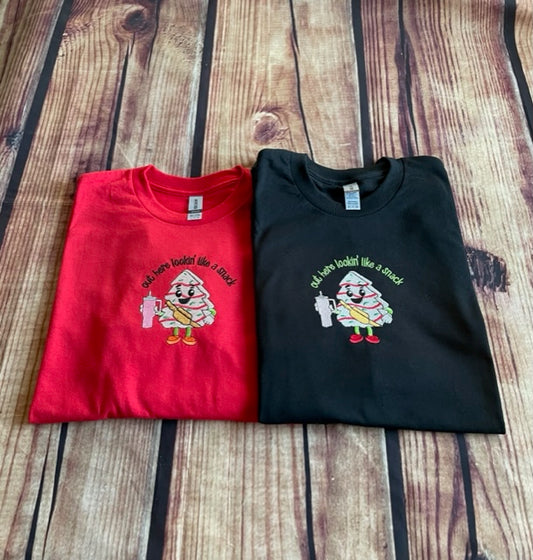 Out Here Looking like a Snack Embroidery Christmas Funny Long Sleeve Tshirt | Humor Long Sleeve Tshirt | Holiday Tshirt | Everyday Gift