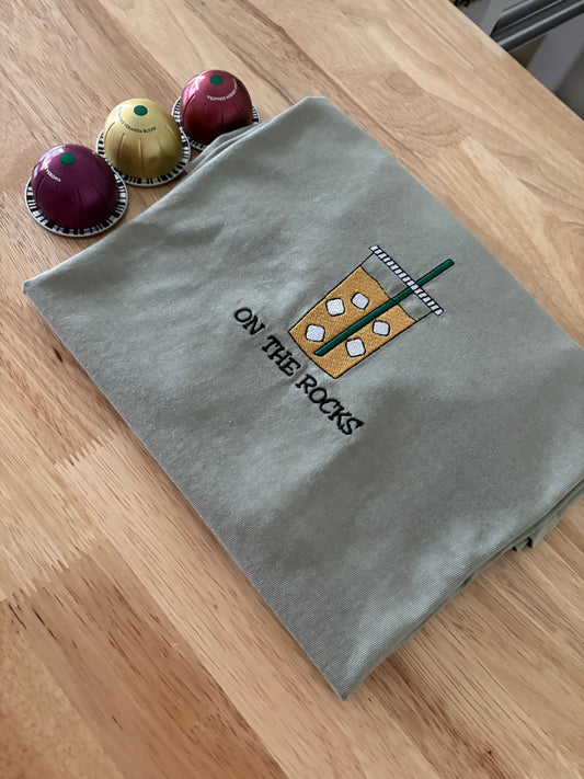 On the Rocks Iced Coffee Embroidery Tshirt | On the Rocks Tshirt | Coffee Tshirt